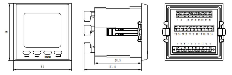 安裝方式:屏裝(開(kāi)孔尺寸:67×67mm)